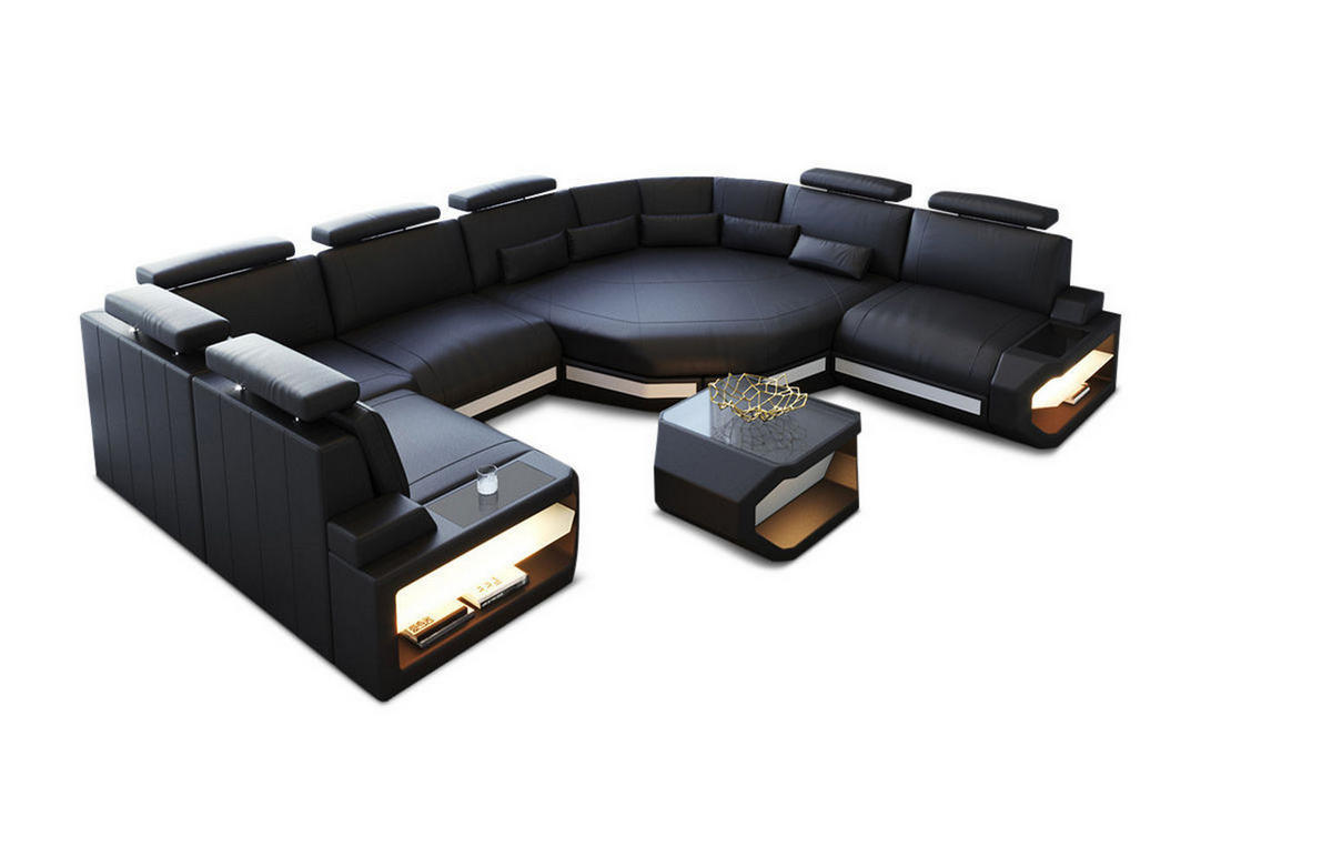 WOHNLANDSCHAFT Asti U Mini - Schwarz/Weiß, Leder (352/93/280cm) - Sofa Dreams
