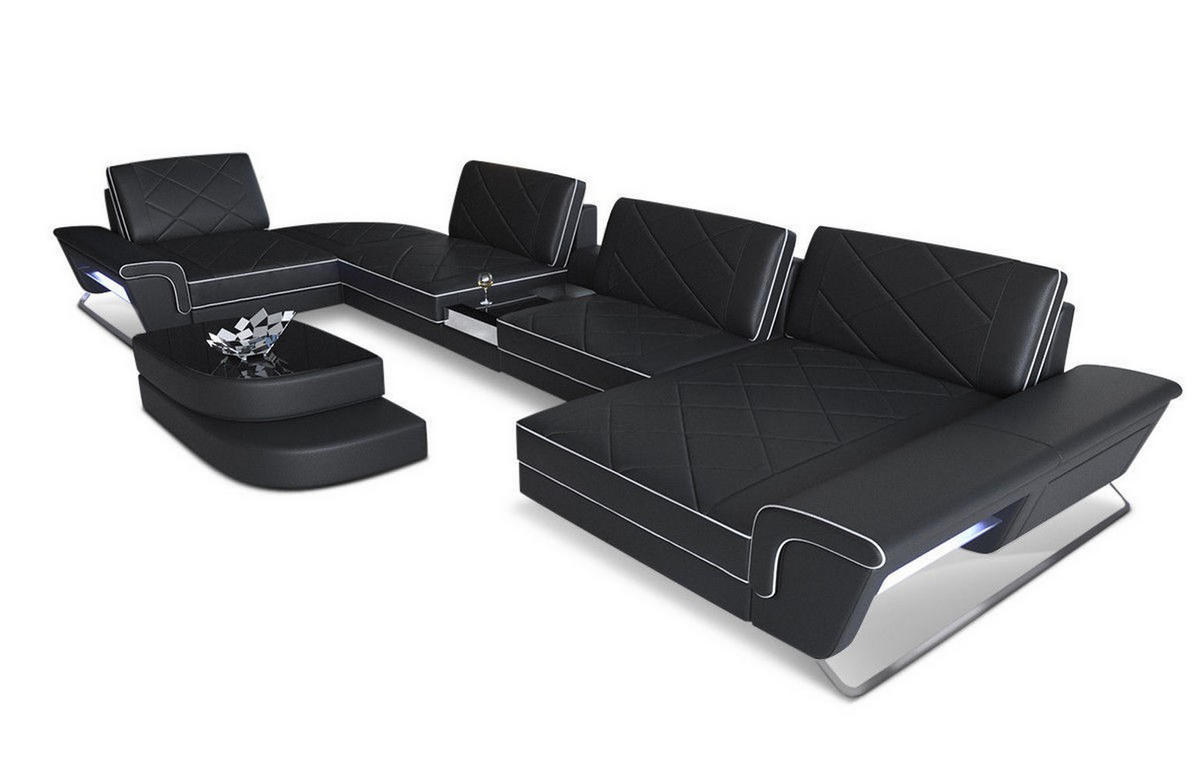 WOHNLANDSCHAFT Bari U - Schwarz/Weiß, Leder (456/89/243cm) - Sofa Dreams