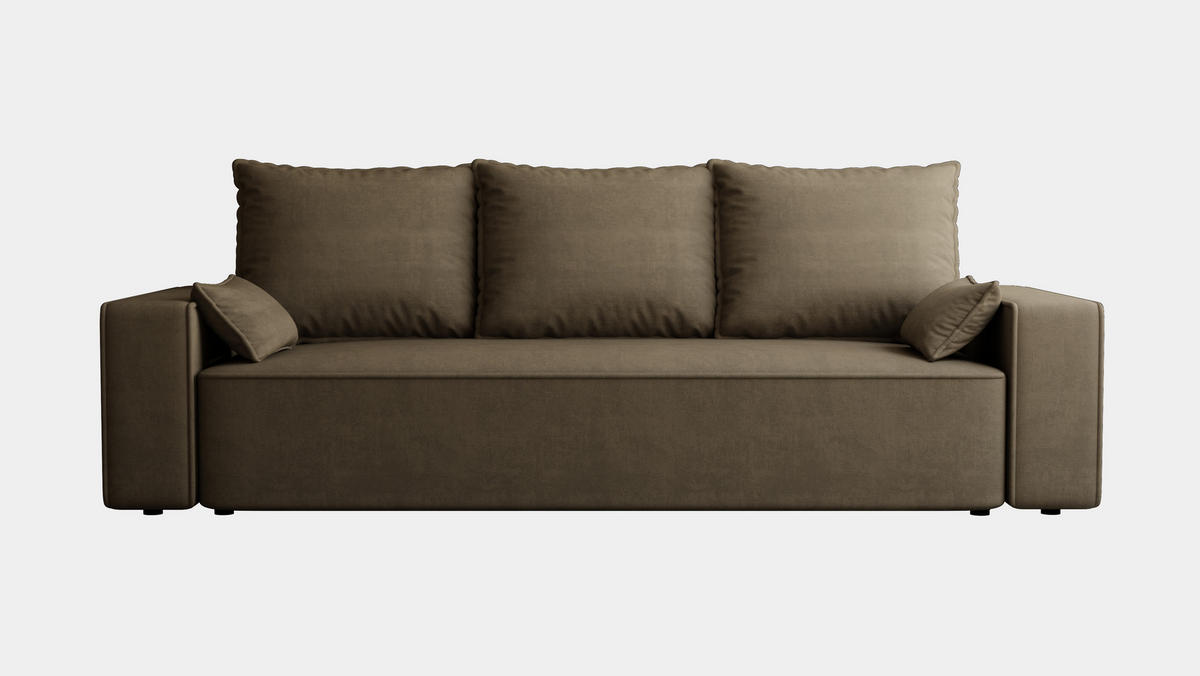 Das Schlafsofa Veno überzeugt mit seinem modernen Design, durchdachter Funktionalität und hochwertiger Verarbeitung – ideal für stilvolle Wohnzimmer oder Gästezimmer. Dieses Modell bietet nicht nur eine bequeme Sitzfläche für den Alltag, sondern verwandelt sich im Handumdrehen in eine großzügige Schlaffläche. Mit dem robusten Stoff Velo, der durch seine elegante Samtoptik und seine hohe Abriebfestigkeit (70.000 Martindale) besticht, wird das Sofa zu einem echten Hingucker in jedem Raum.