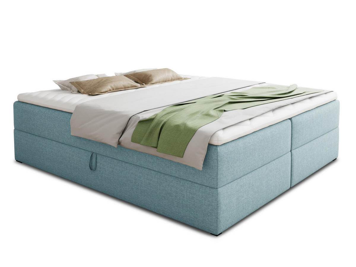 BOXBETT Base - 140x200 - blau (Vidar 83, Webstoff) - Blau/Schwarz, Holz/Holzwerkstoff (140/200cm) - SofnetSofnet