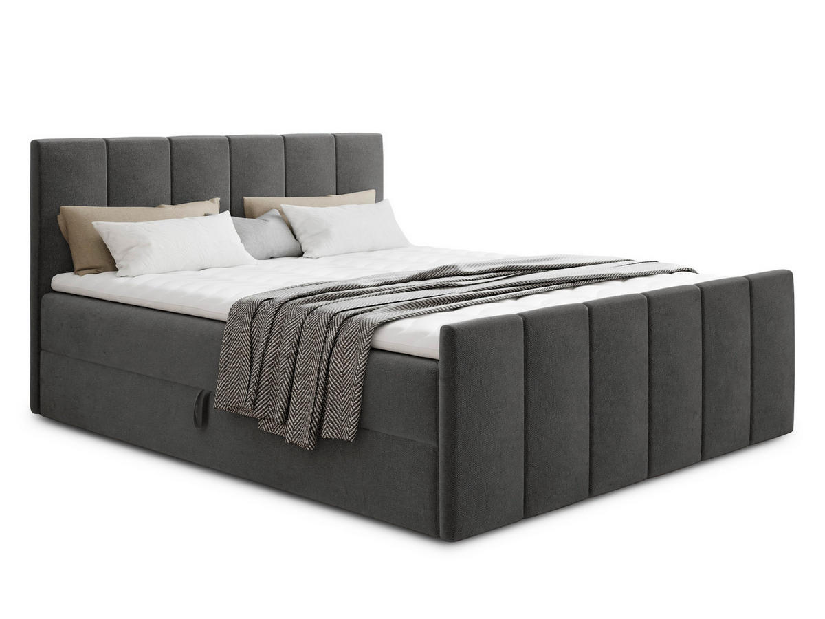 BOXBETT Star Lux - 140x200 - dunkelgrau (Kronos 22, Velvet) - Dunkelgrau/Schwarz, Holz/Holzwerkstoff (140/200cm) - SofnetSofnet