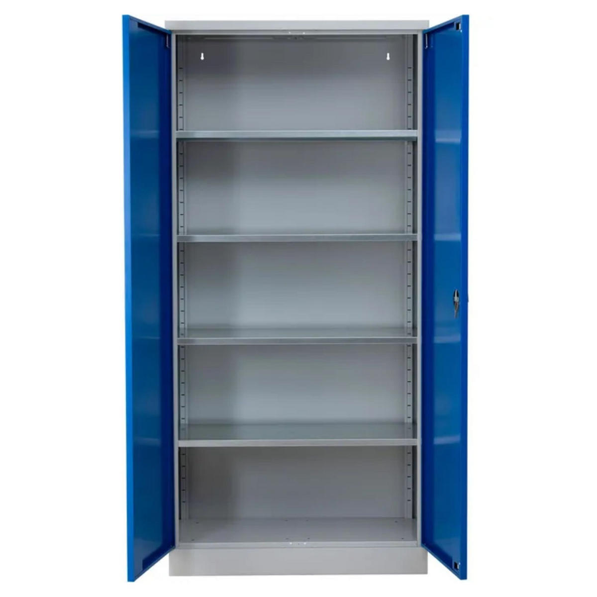 STAHLSCHRANK Bee mit 4 verzinkten Fachböden 195x92x50 cm Korpusfarbe Lichtgrau Frontfarbe Enzianblau