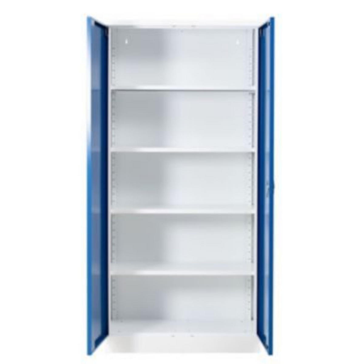 STAHLSCHRANK Bee mit 7 lackierten Fachböden 195x92x42 cm Korpusfarbe Verkehrsweiß Frontfarbe Enzianblau