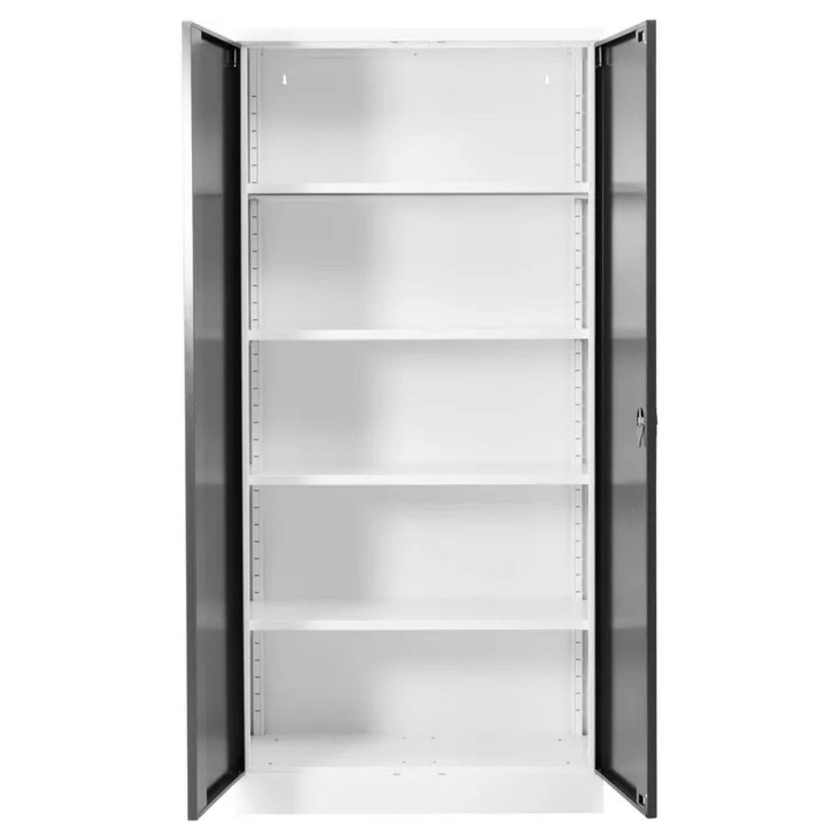 STAHLSCHRANK Bee mit 8 lackierten Fachböden 195x92x60 cm Korpusfarbe Verkehrsweiß Frontfarbe Schwarz - Schwarz, Metall (92/195/60cm)