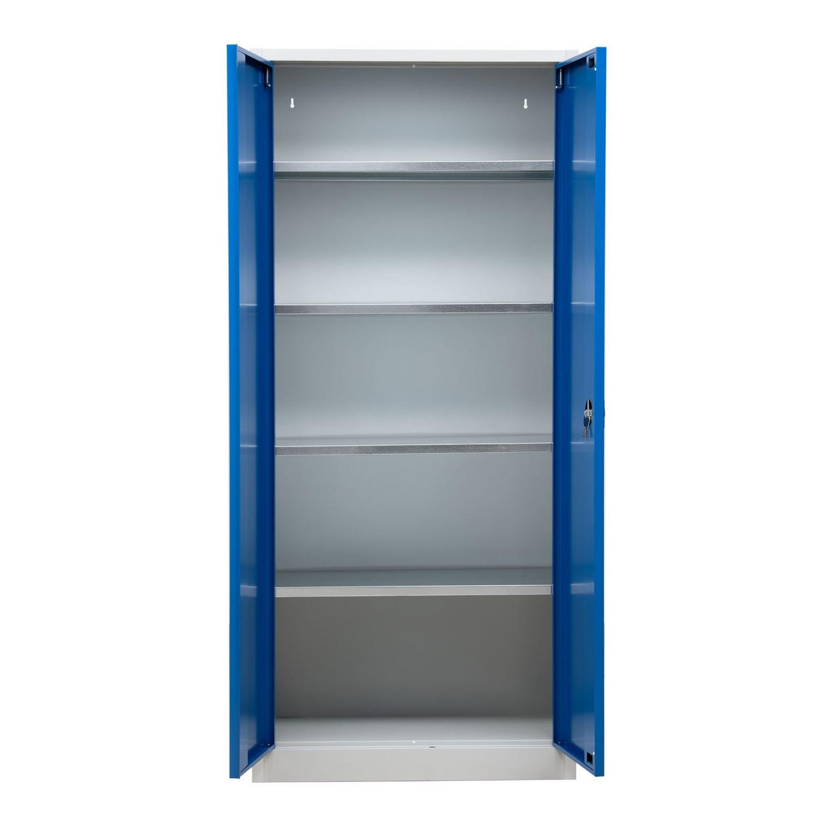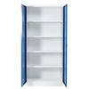 STAHLSCHRANK Bee mit 9 lackierten Fachböden 195x92x50 cm Korpusfarbe Verkehrsweiß Frontfarbe Enzianblau