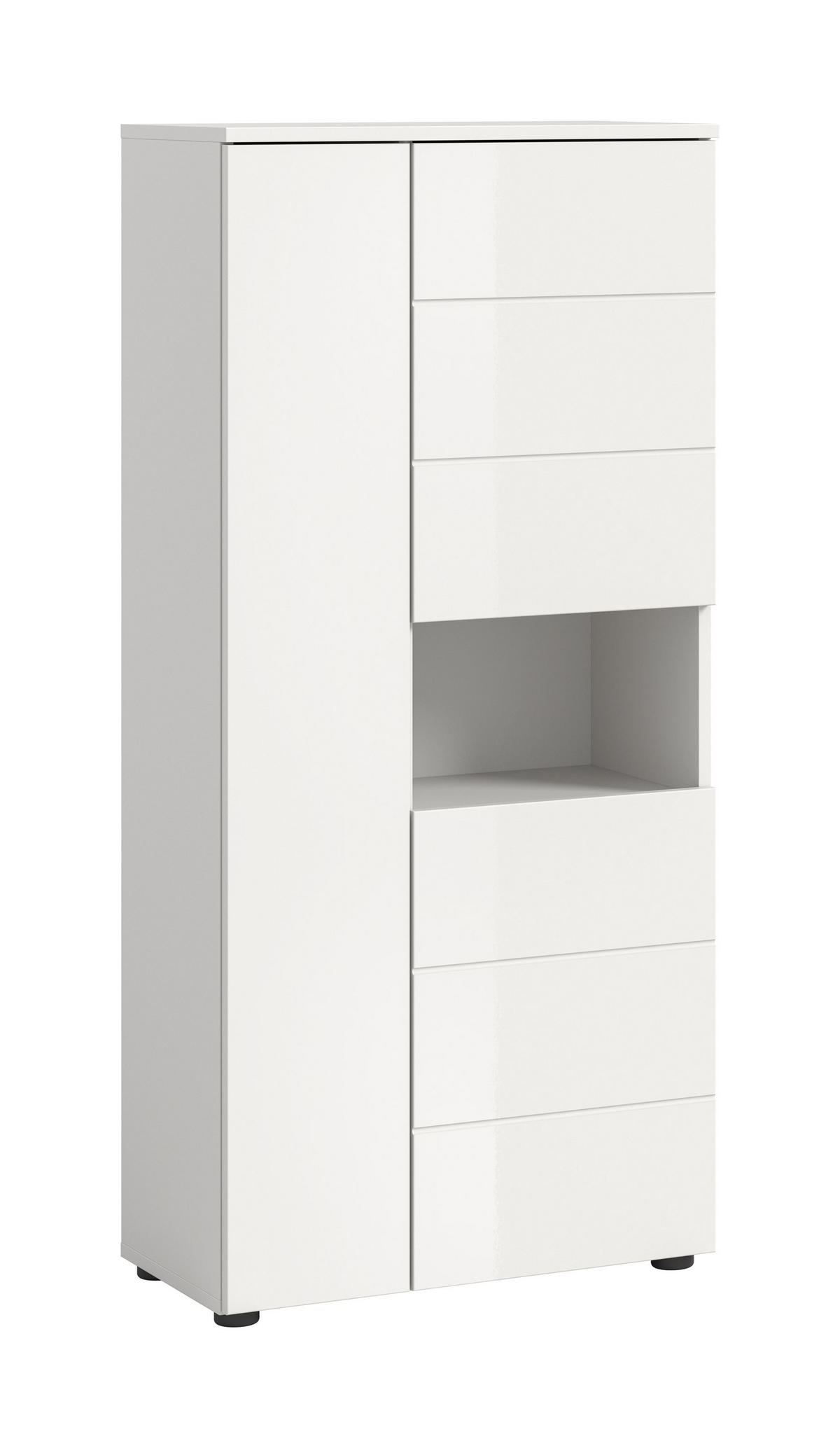 Der Badschrank (B/H/T: 60x133x34 cm) in stilvoller weißer Hochglanz-Tiefzieh-Optik ist die perfekte Wahl für Ihre Badezimmereinrichtung. Er bietet genug Stauraum für Handtücher, Pflegeprodukte und andere Badezimmerutensilien, während die glatte Oberfläche einen modernen Look schafft. Der Schrank lässt sich problemlos in jede Badgestaltung integrieren und sorgt für eine organisierte und aufgeräumte Atmosphäre.