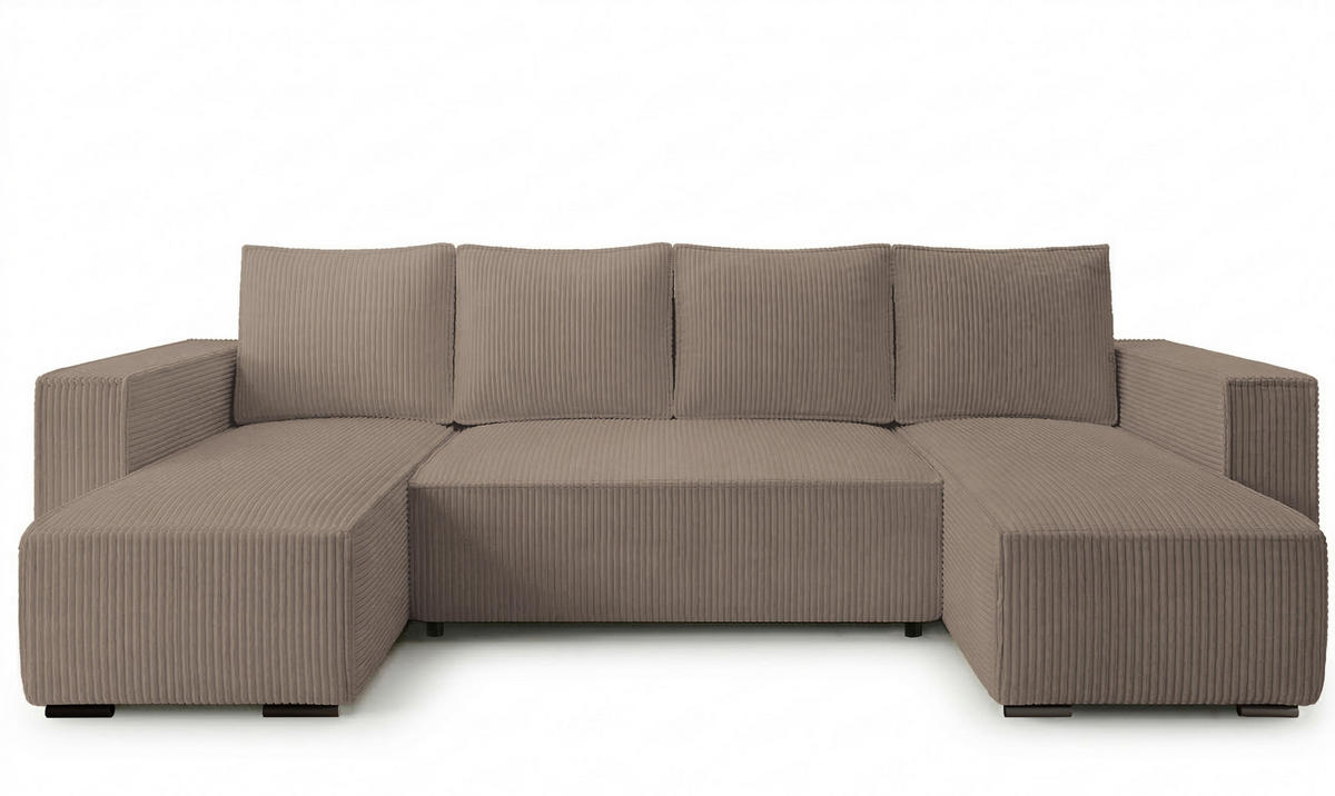 Storez24 WOHNLANDSCHAFT CUDDY U mit Schlaffunktion und Bettkasten, Farbe: Braun, Cordstoff