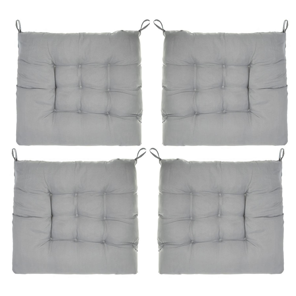 Entdecken Sie unser praktisches 4er Pack Stuhlkissen, das Ihnen sowohl drinnen als auch draußen hervorragenden Sitzkomfort bietet. Jedes Kissen misst 40 x 40 cm und ist 3 cm dick, um Ihnen eine angenehme Sitzposition zu ermöglichen.