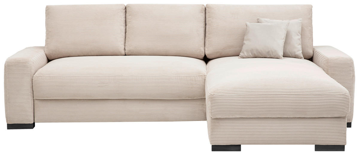 Rein in die Komfortzone: Dieses cremefarbene Eckschlafsofa mit Cord-Bezug entführt Sie auf ein traumhaftes Terrain zum geruhsamen Durchatmen!
