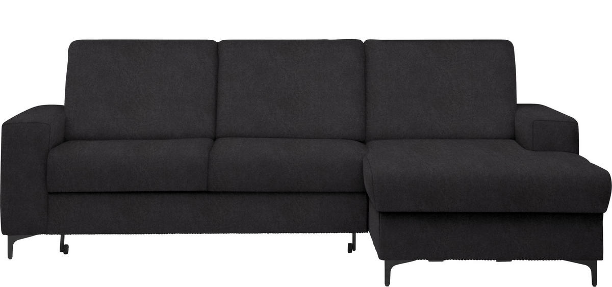 Dieses Design kann sich sehen lassen Das zeitlose Kolorit in Anthrazit verleiht dem Polstermöbel einen harmonischen Look und fügt sich schick in verschiedene Einrichtungstrends ein. Standfest und stylish vervollständigen die Winkelfüße aus lackiertem Stahl in Schwarz das Design.