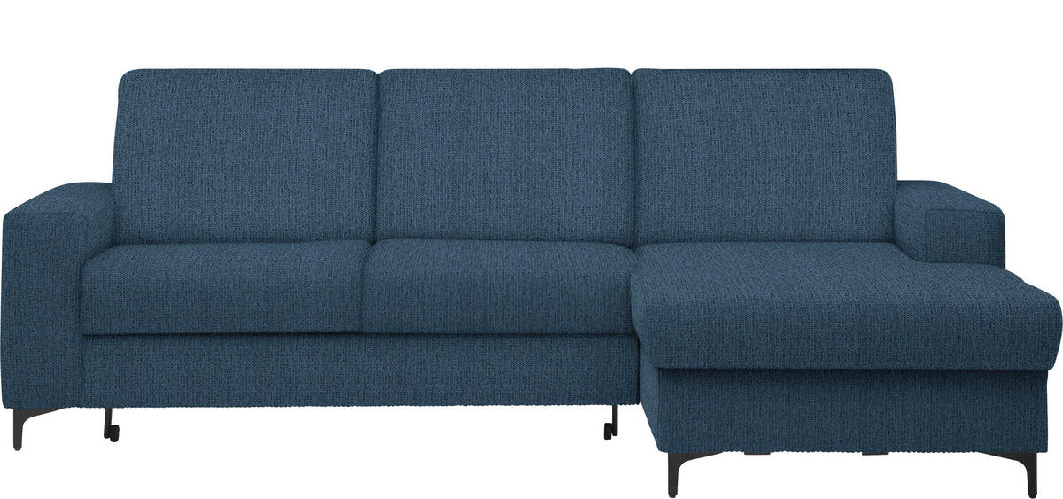 Ihr blaues Ecksofa mit Webstoff-Bezug verführt dazu, behaglich die verdiente Me-Time zu genießen!