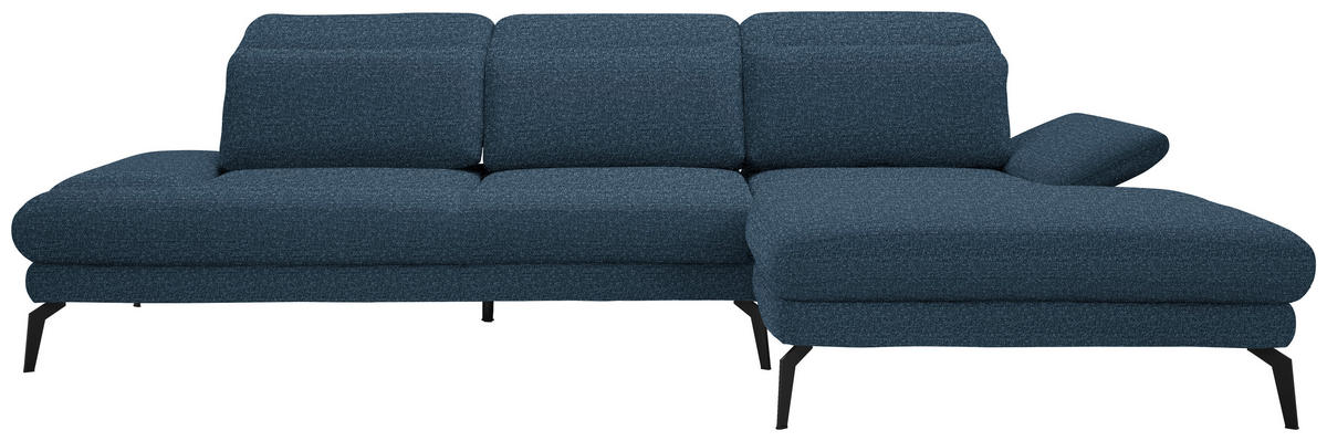 Ihr blaues Ecksofa mit Webstoff-Bezug verführt dazu, behaglich die verdiente Me-Time zu genießen!