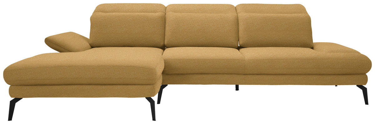 Absolut sehenswert Das lebhafte Kolorit des Polstermöbels in Currygelb kreiert eine ansprechende Optik und integriert sich schick in diverse Einrichtungstrends. Durch die hohen Winkelfüße aus Metall in Schwarz wird das Design stilgerecht komplettiert.