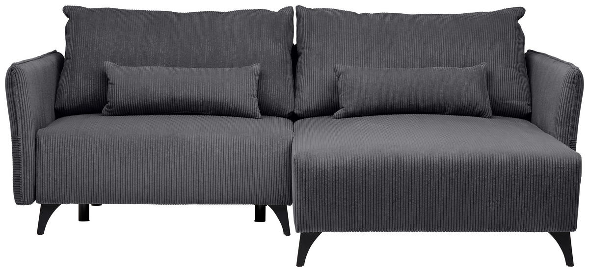 Wenn dieses graphitfarbene Ecksofa mit Cord-Bezug bei Ihnen einzieht, dreht sich alles um Behaglichkeit!