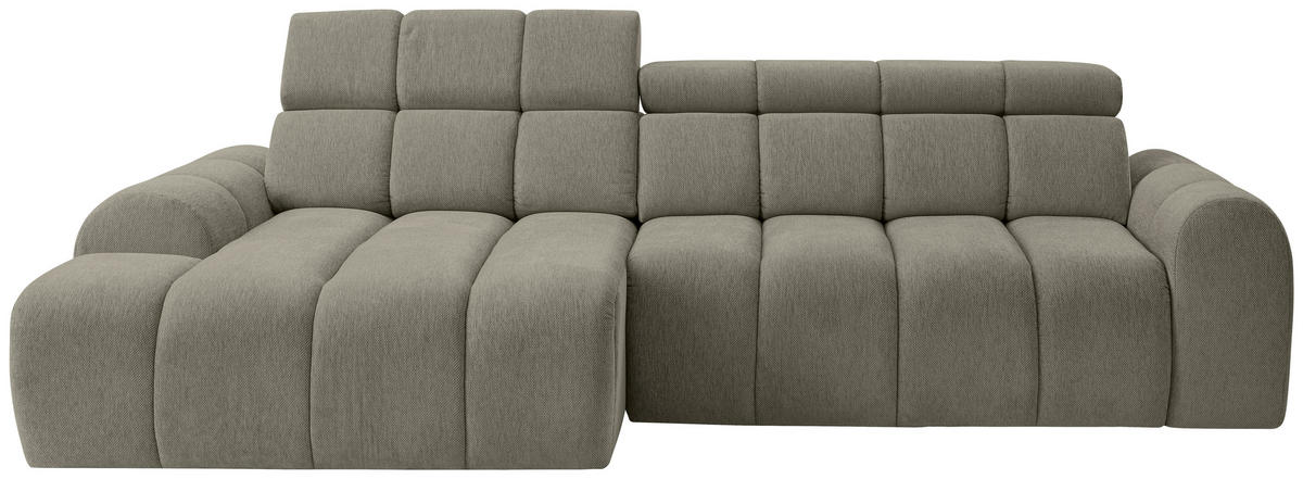 Dieses graubraune Ecksofa mit Chenille-Bezug zaubert Ihnen bei jeder Gelegenheit zum Ausspannen ein Lächeln ins Gesicht!