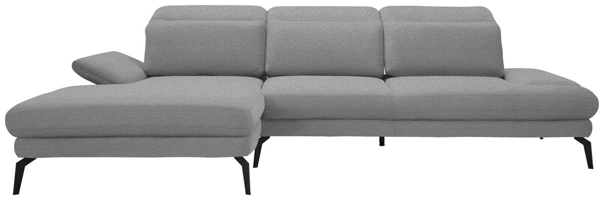 Genießen Sie Ihr Rendezvous mit der wohligen Unbeschwertheit des Seins auf diesem hellgrauen Ecksofa mit Webstoff-Bezug!