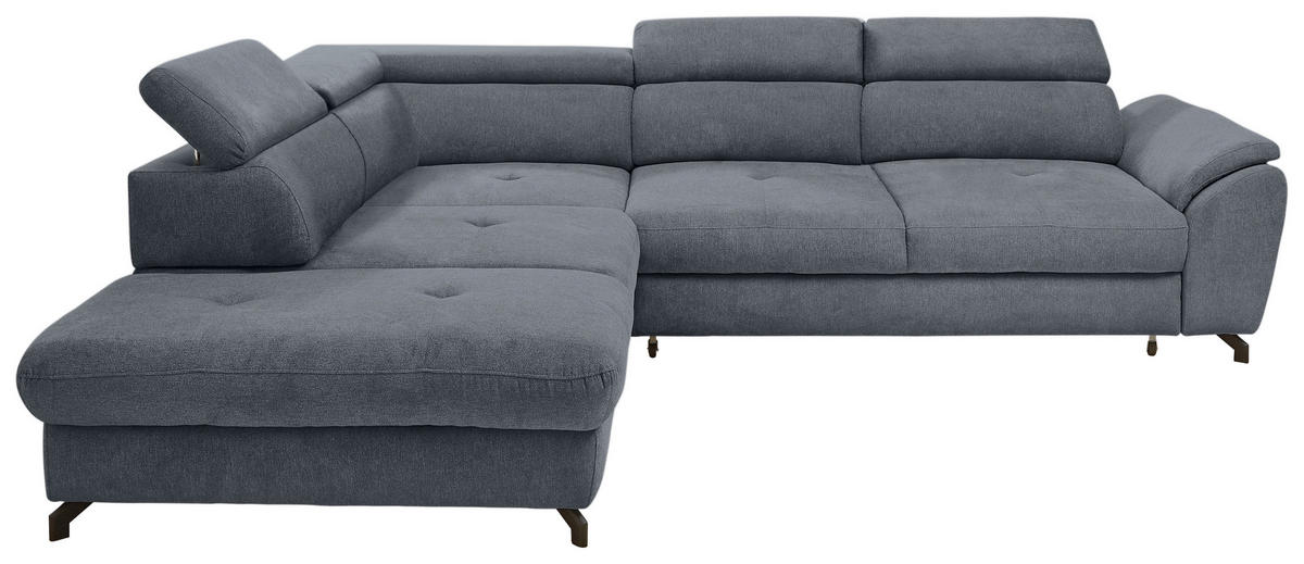 Ihr graphitfarbenes Ecksofa mit Webstoff-Bezug verführt dazu, behaglich die verdiente Me-Time zu genießen!