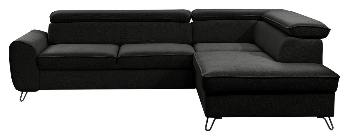Als treue Begleitung für wonnige Time-outs daheim gesellt sich dieses schwarze Ecksofa mit Flachgewebe-Bezug gerne zu Ihnen!