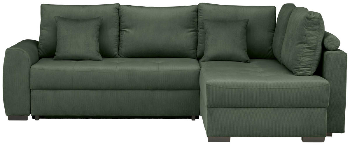 Mit diesem dunkelgrünen Ecksofa mit Cord-Bezug landen Sie auf jeden Fall einen Hit in Sachen Heimeligkeit!