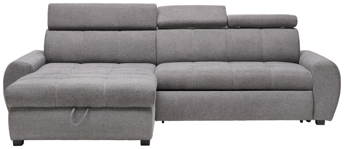 Ihr Aushängeschild, was Heimeligkeit betrifft: ein graues Ecksofa mit Webstoff-Bezug, das es in sich hat!