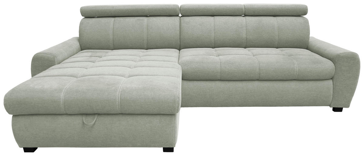So ein hellgraues Ecksofa mit Webstoff-Bezug hebt Ihr inspiriertes Home-Living auf ein außergewöhnliches Niveau!
