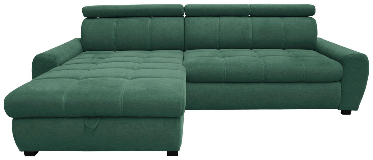 Rein in die Komfortzone: Dieses türkise Ecksofa mit Webstoff-Bezug entführt Sie auf ein traumhaftes Terrain zum geruhsamen Durchatmen!