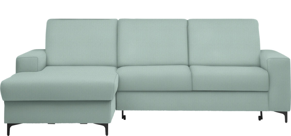Eine Sonderportion Wohnlichkeit schenkt Ihnen dieses mintgrüne Ecksofa mit Cord-Bezug. Greifen Sie zu!