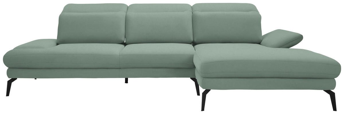 Absolut sehenswert Das Polstermöbel wird mit dem zarten Pastell-Kolorit in Mintgrün in verschiedenen Einrichtungsstilen zum Blickfang. Für das stilgerechte Finish setzen hohe Winkelfüße aus Metall in Schwarz stimmige Akzente und schaffen leichte Bodenfreiheit.