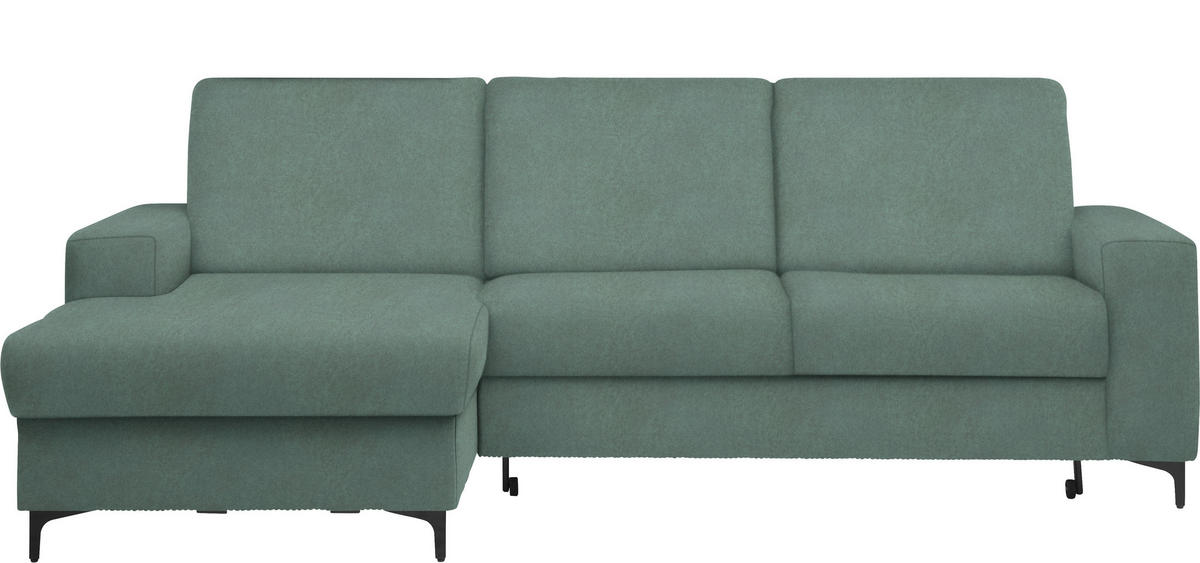Als treue Begleitung für wonnige Time-outs daheim gesellt sich dieses mintgrüne Ecksofa mit Velours-Bezug gerne zu Ihnen!