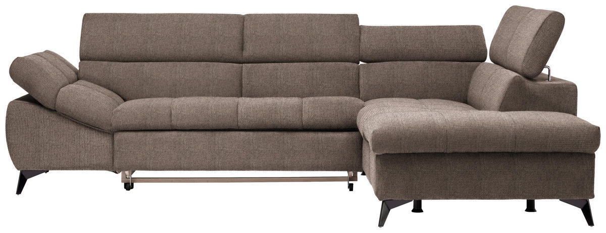 Ihr Aushängeschild, was Heimeligkeit anbelangt: ein taupefarbenes Ecksofa mit Mikrofaser-Bezug, das es in sich hat!