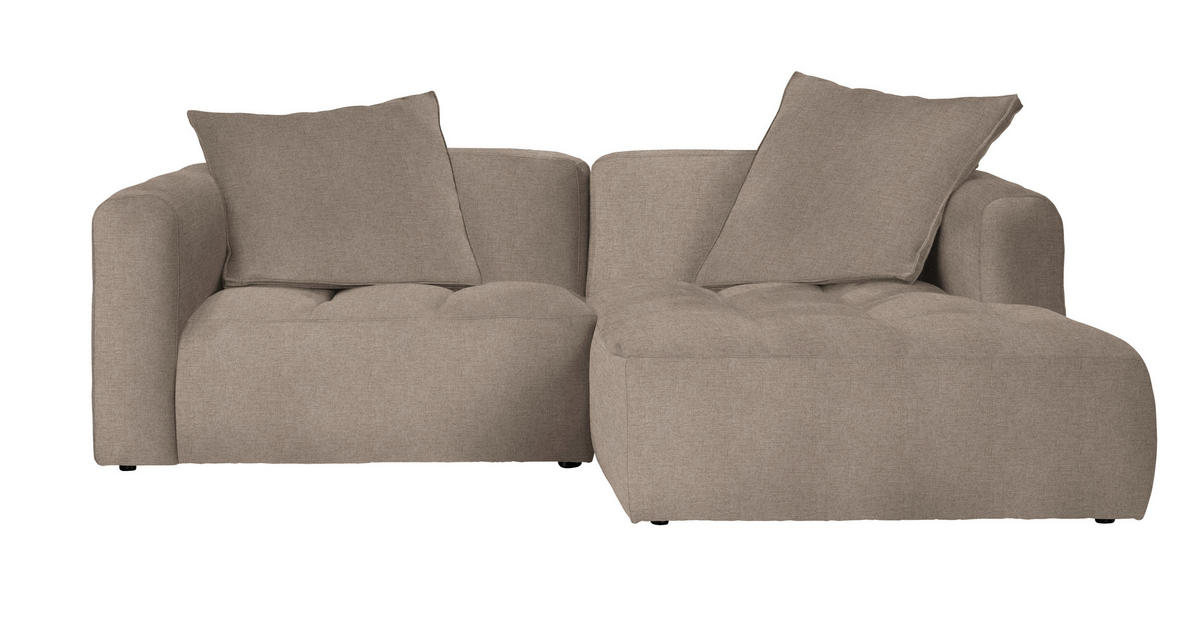 Als treue Begleitung für wonnige Time-outs daheim gesellt sich dieses braune Ecksofa mit Flachgewebe-Bezug gerne zu Ihnen!
