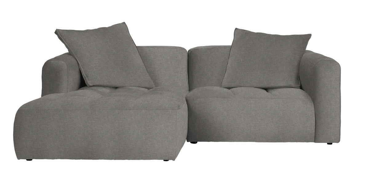 So ein hellgraues Ecksofa mit Flachgewebe-Bezug hebt Ihr inspiriertes Home-Living auf ein außergewöhnliches Niveau!