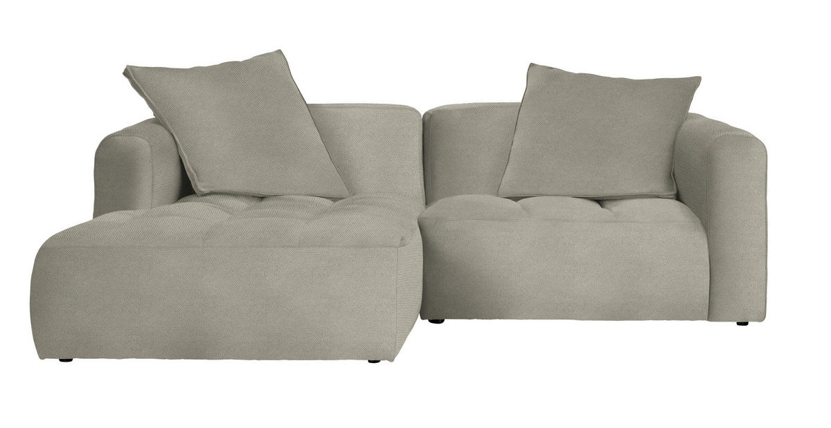 Verwöhnen Sie sich selbst mit diesem hellgrauen Ecksofa mit Webstoff-Bezug!