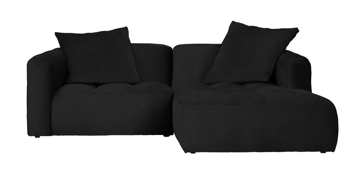 So ein schwarzes Ecksofa mit Webstoff-Bezug hebt Ihr inspiriertes Home-Living auf ein außergewöhnliches Niveau!