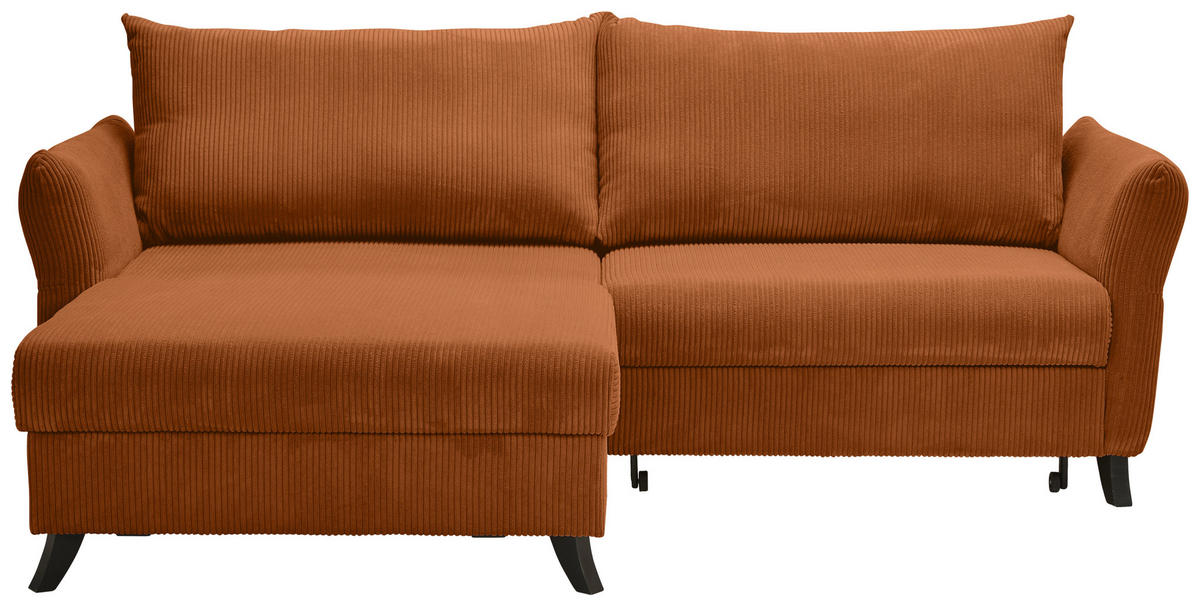 Als treue Begleitung für wonnige Time-outs daheim gesellt sich dieses rostrote Ecksofa mit Cord-Bezug gerne zu Ihnen!