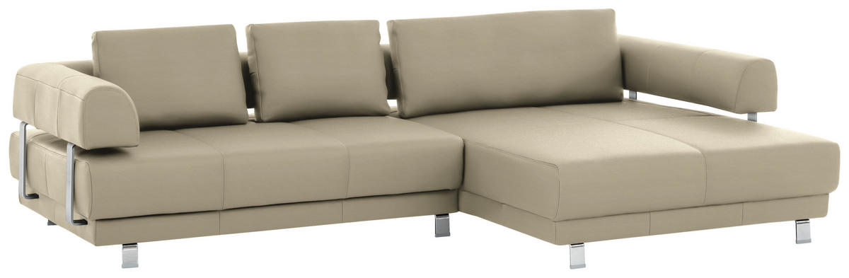 Dieses Design kann sich sehen lassen Ein Eyecatcher in verschiedenen Einrichtungskonzepten ist die freundliche Farbgebung in Sandfarben. Für den Feinschliff setzen Winkelfüße aus glänzendem, verchromtem Eisen stimmige Akzente.