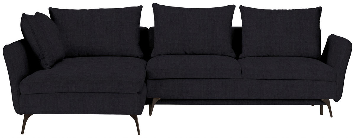 Genießen Sie Ihr Rendezvous mit der wohligen Unbeschwertheit des Seins auf diesem schwarzen Ecksofa mit Webstoff-Bezug!