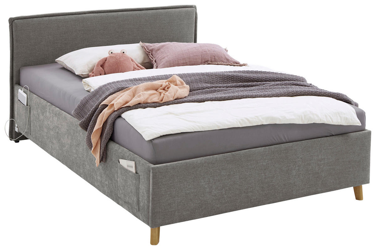 STYLIFE Polsterbett 140x200 cm mit 2 Betttaschen & USB-Anschluss in Grau
