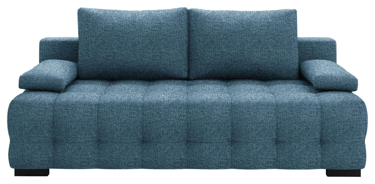 Dieses blaue Schlafsofa mit Struktur-Bezug zaubert Ihnen bei jeder Gelegenheit zum Ausspannen ein Lächeln ins Gesicht!