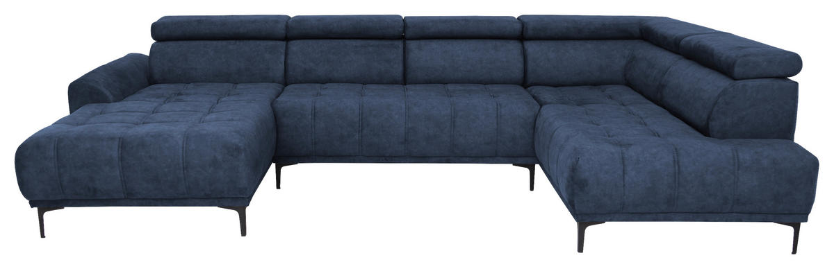 Ihre dunkelblaue Wohnlandschaft mit Velours-Bezug verführt dazu, behaglich die verdiente Me-Time zu genießen!