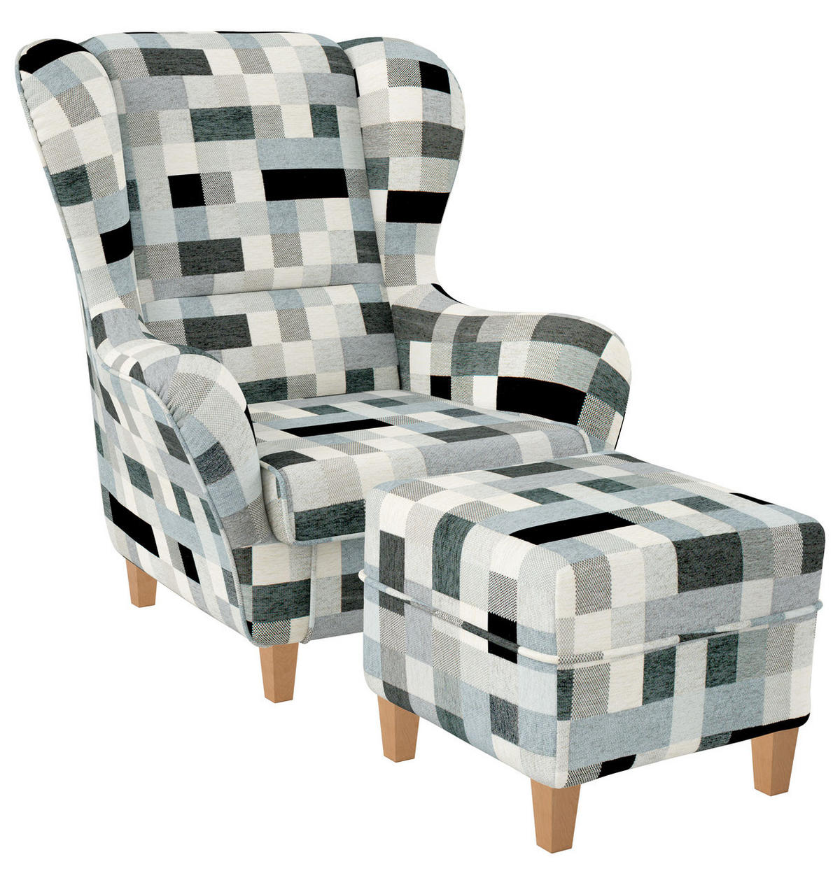 Sofia Ohrensessel in Patchwork grau