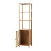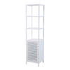 SVITA Freistehender, hoher Badezimmerschrank in Weiß mit offenen Regalen - Optimale Raumnutzung im nordischen Design - Gesamtmaße: ca. 41x36x165 cm (BxTxH) - Bringen Sie Ihre Badutensilien in diesem eindrucksvollen und hochwertigen Hingucker aus Bambus unter. Aufgrund der luftdurchlässigen Front ist das untere Fach des Badschranks ideal geeignet, um z.B. Handtücher aufzubewahren. Rückwand und Seitenwände sind geschlossen gehalten, um eine sichere und staubfreie Aufbewahrung zu bieten. Die Tür des weißen Bambus-Schranks ist mit einem praktischen Handknauf und einem magnetischen Verschluss versehen. Vier darüberliegende Ablageflächen stehen zur Verfügung, um Dinge, wie z.B. Pflege- oder Reinigungsutensilien griffbereit zu halten. Auch schöne Dekorationsgegenstände können auf dem Badezimmerschrank stilvoll in Szene gesetzt werden. Zudem sorgt das hochwertig behandelte Bambus-Material für ein gutes Innenschrank-Klima und gibt Ihrem Bad eine angenehm natürliche Atmosphäre.