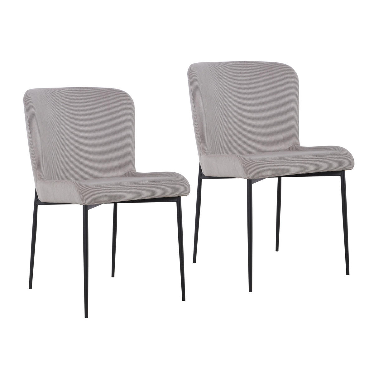 Der angenehm weiche Cordbezug lädt zum Verweilen ein, sei es beim entspannten Abendessen oder beim Arbeiten am Schreibtisch. Die leicht gerundete Rückenlehne und die stabilen Beine aus pulverbeschichtetem Stahl sorgen nicht nur für eine moderne Ästhetik, sondern bieten auch zusätzlichen Komfort. So fügt sich der Polsterstuhl nahtlos in jede Umgebung ein.