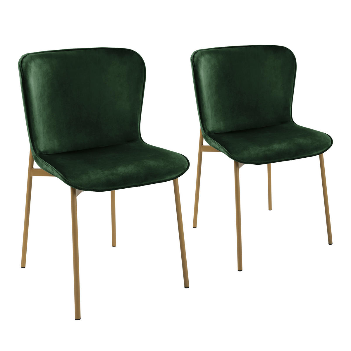 SVITA MARY 2er Set Esszimmerstuhl mit Polsterung aus Samt in Dunkelgrün/Gold- Esszimmerstuhl in schlichtem Design - Gesamtmaße je Stuhl: ca. 50 x 50 x 81 cm (TxBxH) -