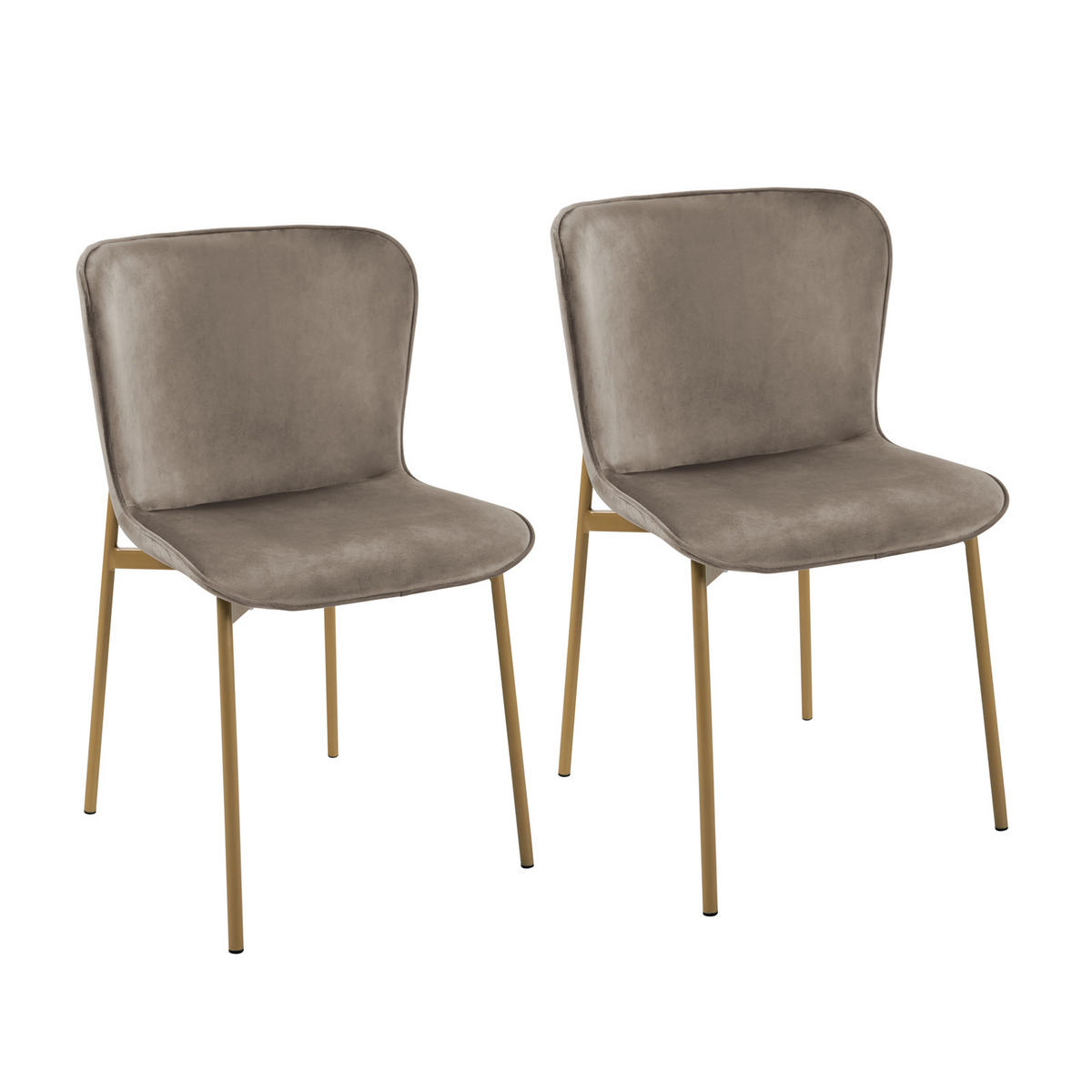 SVITA MARY 2er Set Esszimmerstuhl mit Polsterung aus Samt in Taupe/Gold