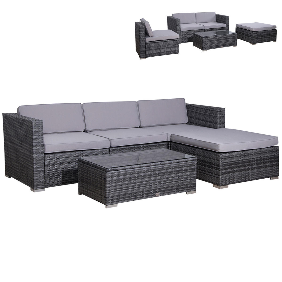 - Farbe: Grau (Polyrattan), Grau (Kissen)