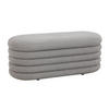 SVITA BLOSSOM XL Ottomane mit Stauraum und Boucle-Bezug in Hellgrau Stilvoller Komfort und Aufbewahrung für jeden Raum - Gesamtmaße: ca. 108x45x44cm (BxTxH) Vervollständigen Sie Ihre Einrichtung mit unserem vielseitigen Ottomanen BLOSSOM XL. Der längliche Sitzpouf überzeugt mit gemütlichen Boucle-Polstern wie auch praktischem Stauraum. Dieses edle Möbelstück vereint Funktionalität und Design auf angenehme Weise. Nutzen Sie es nach Belieben als bequeme Sitzbank, Schuhbank, Sitztruhe oder weichen Polsterhocker. Dank des Stauraums im Inneren können Sie problemlos Schuhe, Zubehör oder Accessoires verstauen und ihn als praktische Truhe für Ihr Ankleidezimmer nutzen. Der abnehmbare Deckel ermöglicht einen einfachen und schnellen Zugriff. Das durchdachte Design macht ihn zum perfekten Begleiter im Wohnzimmer, wie auch im gesamten Wohnbereich, sei es zum Sitzen oder zum entspannten Hochlegen der Füße. Darüber hinaus ist er eine stilvolle Ergänzung für Ihren Schminktisch. Erleben Sie den Komfort und die Schönheit dieses Ottomanen, der jeden Raum aufwertet und mit gemütlicher Eleganz bereichert.