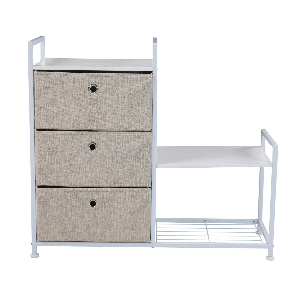 Verstauen Sie eine Vielzahl an Gegenständen in unserem universellen Schubladenregal mit Stoffschubladen, einer Ablagefläche und zusätzlicher luftdurchlässiger Ablagefläche.