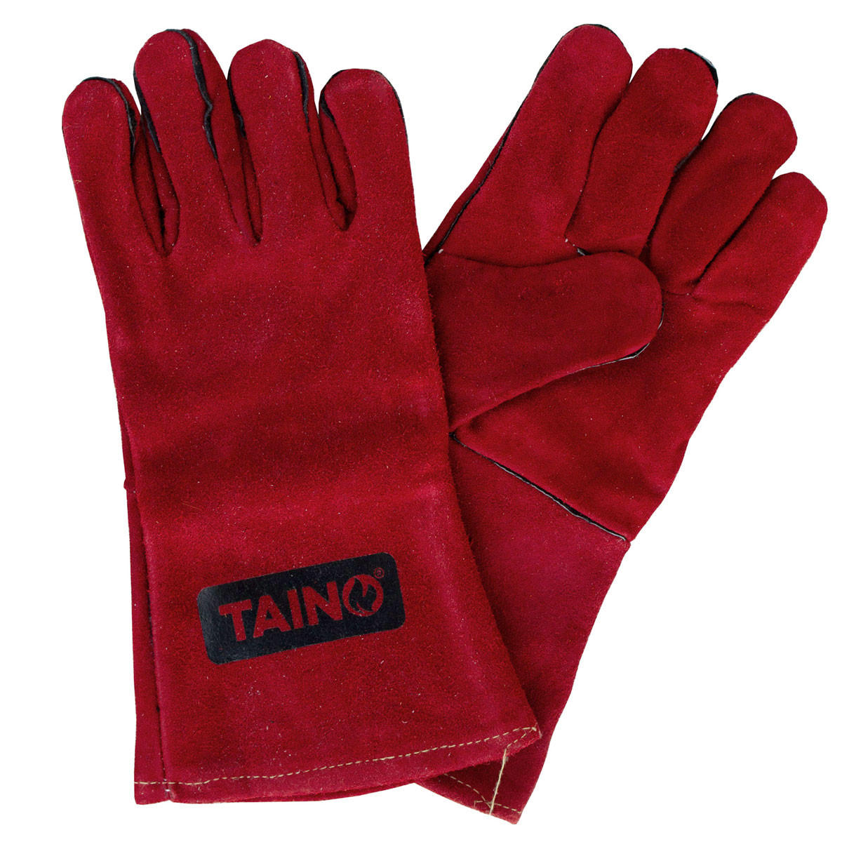 TAINO Grillhandschuhe aus Leder mit Fingern - Hitzebeständig in Universalgröße / Rot- Sicherer Umgang mit Feuer und Hitze -
