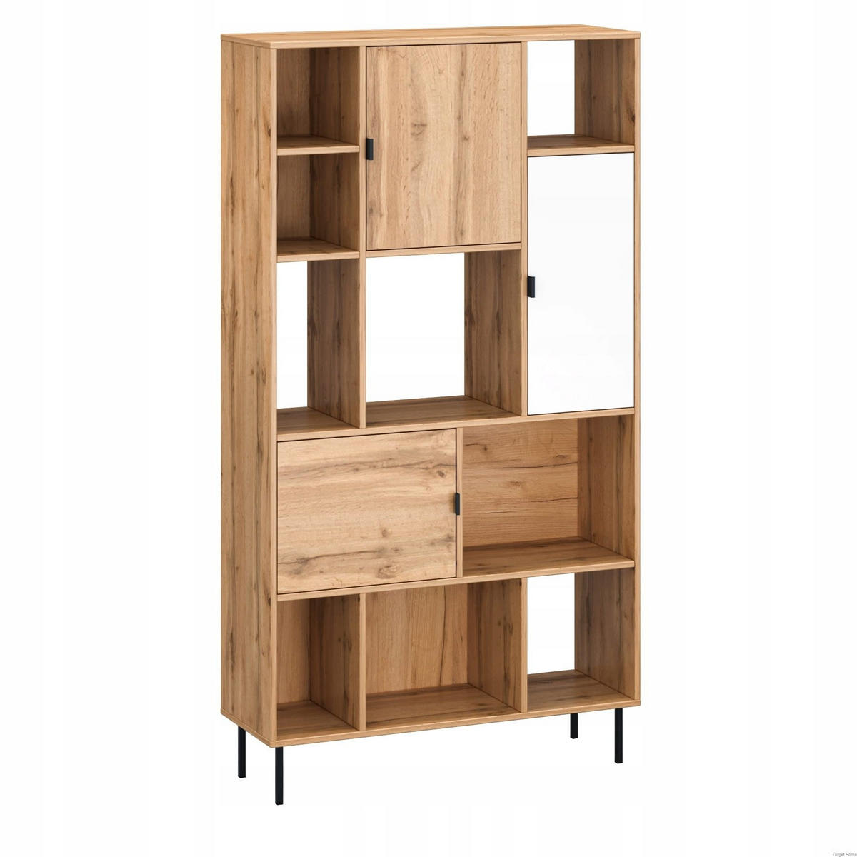 Die robusten schwarzen Metallbeine verleihen dem Regal einen industriellen Touch und sorgen für hohe Stabilität. Mit seinen Maßen von 100 cm Breite, 35 cm Tiefe und 185 cm Höhe bietet das Bücherregal neun geräumige Fächer, die jeweils bis zu 3 kg belastbar sind. Die mattweißen Fronten bilden einen schönen Kontrast zum dunklen Holz und sorgen für Leichtigkeit und Helligkeit im Raum.